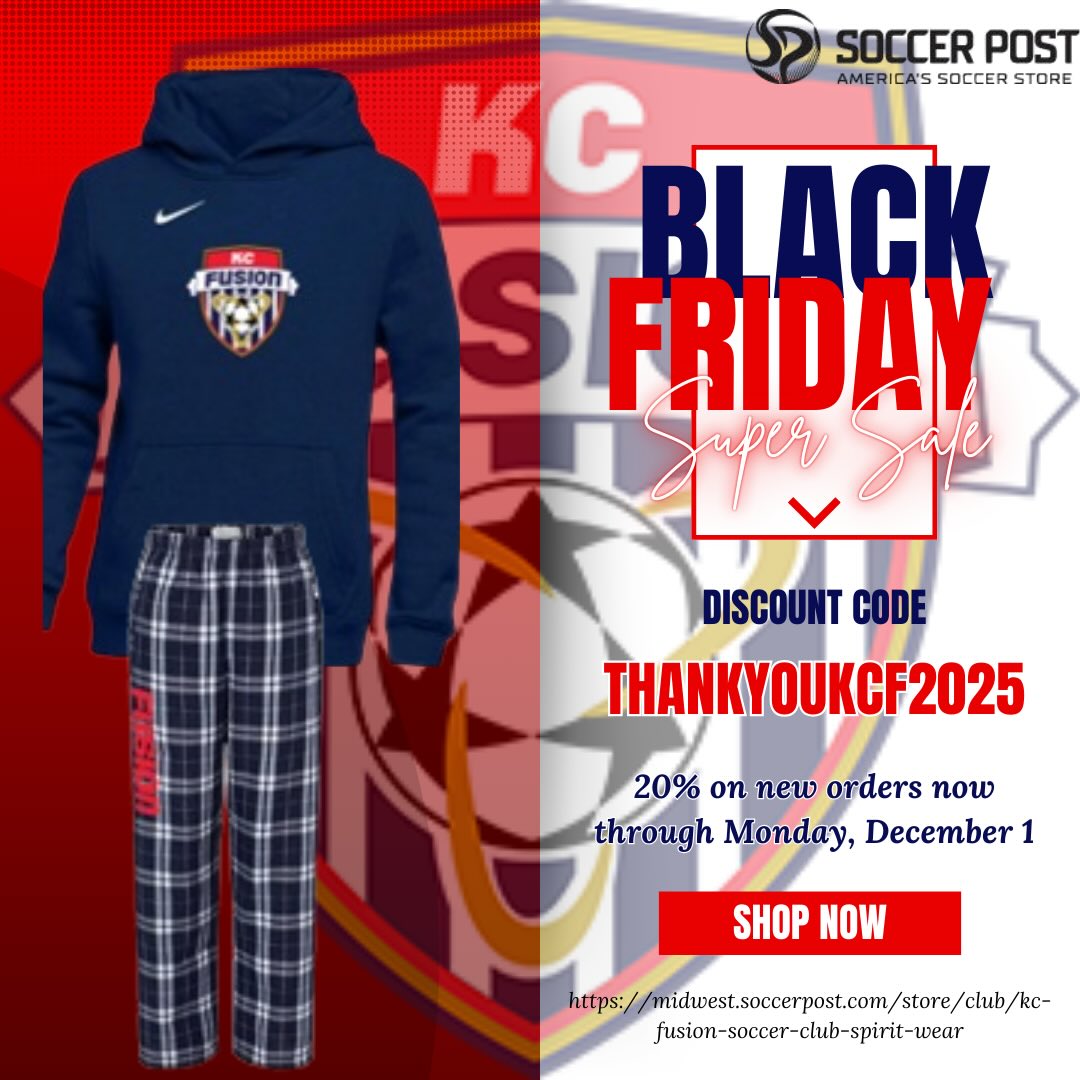 Holiday savings are here! Shop KC Fusion SC Spirit Wear Catalog online now with code: THANKYOUKCF2025 to save 20% on new orders for eligible spirit wear items placed now through Monday, December 1. Code must be entered during checkout to receive your discount. 🎁 ⚽️ @soccerpost